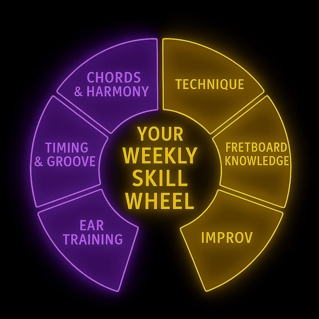 I created the Skill Wheel to help you visualize your growth — to see the areas you’re strong in, where you’re weak, and what to focus on next. It’s a snapshot of your musical fitness.